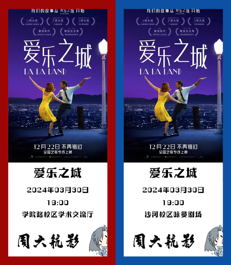 3月30日(周六)19:00,學院路校區學術交流廳、沙河校區詠曼劇場,同步放映!