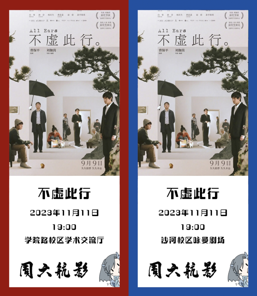 11月11日(周六)19:00,《不虛此行》將于學院路校區學術交流廳和沙河校區詠曼劇場同步放映!
