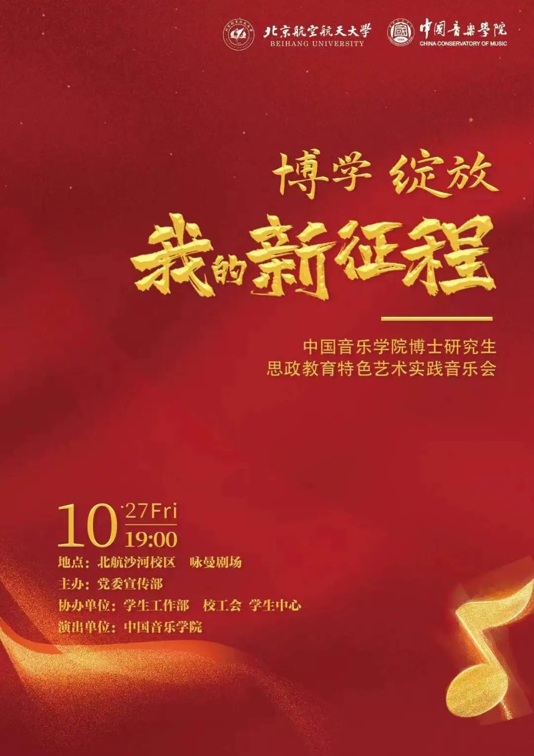 10月27日(周五)19:00,在沙河校區(qū)詠曼劇場,中國音樂學院與你,盛情相會,不見不散!