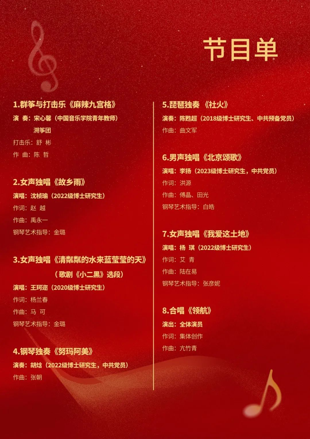 正值全國學習宣傳貫徹黨的二十大精神和學習貫徹習近平新時代中國特色社會主義思想主題教育的熱潮中,中國音樂學院2位青年教師和黨委研工部直屬博士生班的7名博士研究生,在“博學 綻放”研究生思想政治教育品牌的策劃下,結(jié)合個人學習、工作、生活、成長等經(jīng)歷,演出一場以“我的新征程”為主題的博士研究生思政教育特色藝術(shù)實踐音樂會,開設(shè)一堂踐行習近平總書記勉勵青年一代“立大志、明大德、成大才、擔大任”經(jīng)典語錄的生動思政教育實踐課。音樂會以“聆聽經(jīng)典語錄 講好我的故事 演好中國作品”為基本主線,以“導語——我的故事——作品” 為呈現(xiàn)方式,引領(lǐng)全體研究生在聆聽新時代中國故事和中國作品中,深入學習習近平總書記經(jīng)典語錄,深刻感悟習近平新時代中國特色社會主義思想和黨的二十大精神的精神內(nèi)涵,汲取青春奮斗力量,讓“我的新征程”在黨的二十大精神的指引下?lián)P帆啟航!