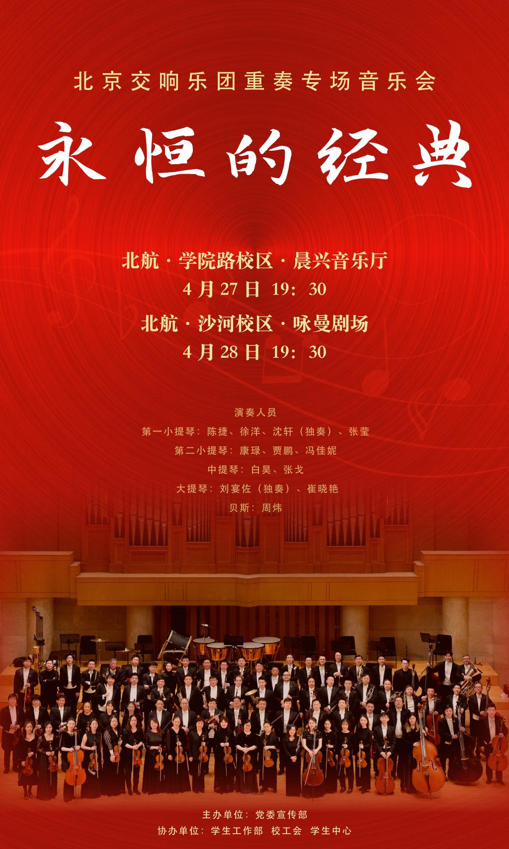 “永恒的經典”——北京交響樂團重奏專場音樂會將于周四(4月27日)19:30,周五(4月28日)19:30先后在學院路校區晨興音樂廳、沙河校區詠曼劇場上演。
