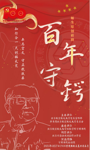 為慶祝中國共產黨成立100周年,繁榮校園美育文化傳播,弘揚空天報國情懷,傳承守正出新精神,北航學院守鍔書院師生原創話劇《百年守鍔》應邀作為北航首屆藝術節“大師劇”系列首場演出,將于4月27日晚19:00在北航晨興音樂廳準時上演。
