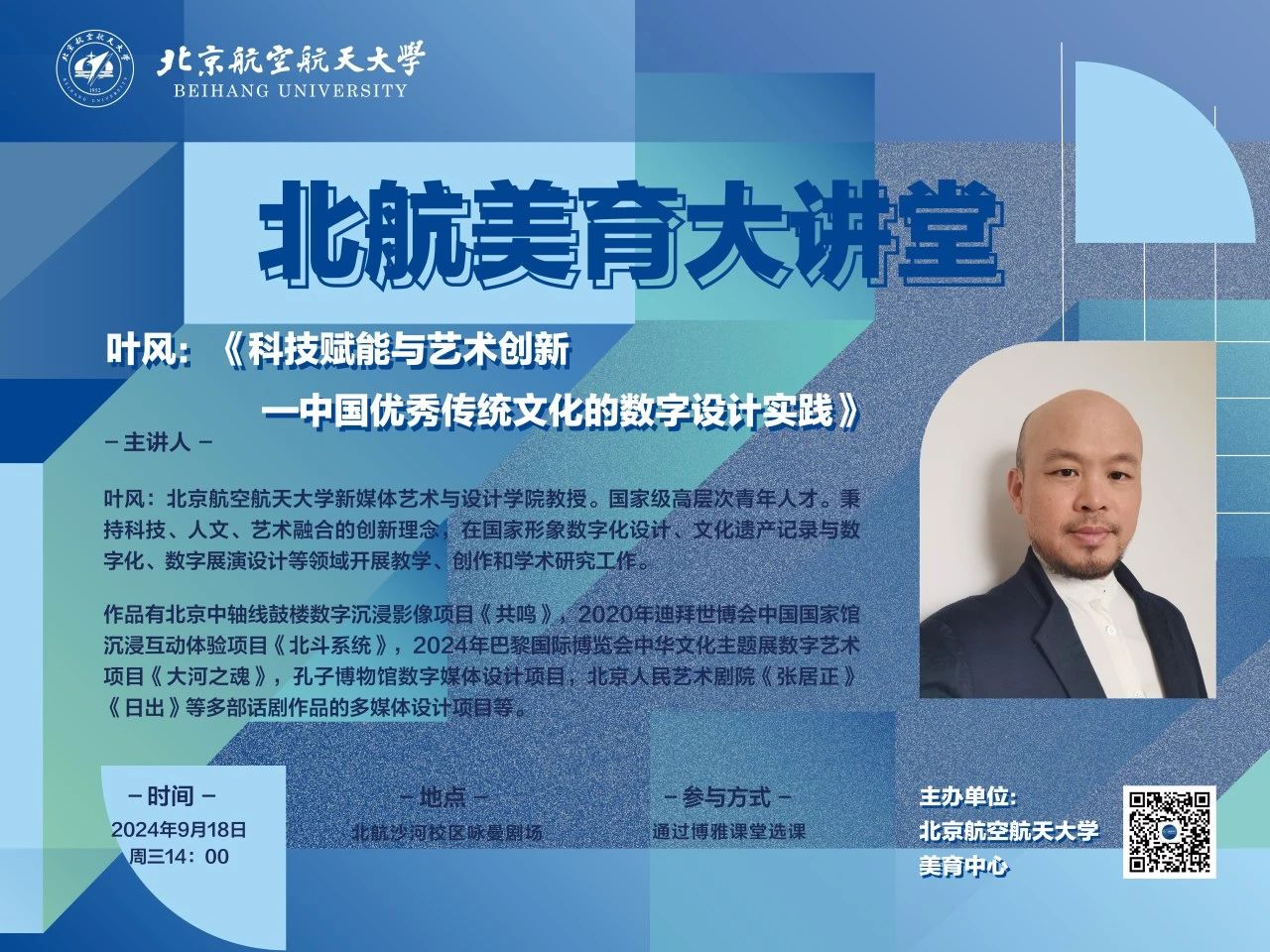 【北航美育大講堂】葉風:《科技賦能與藝術創新—中國優秀傳統文化的數字設計實踐》