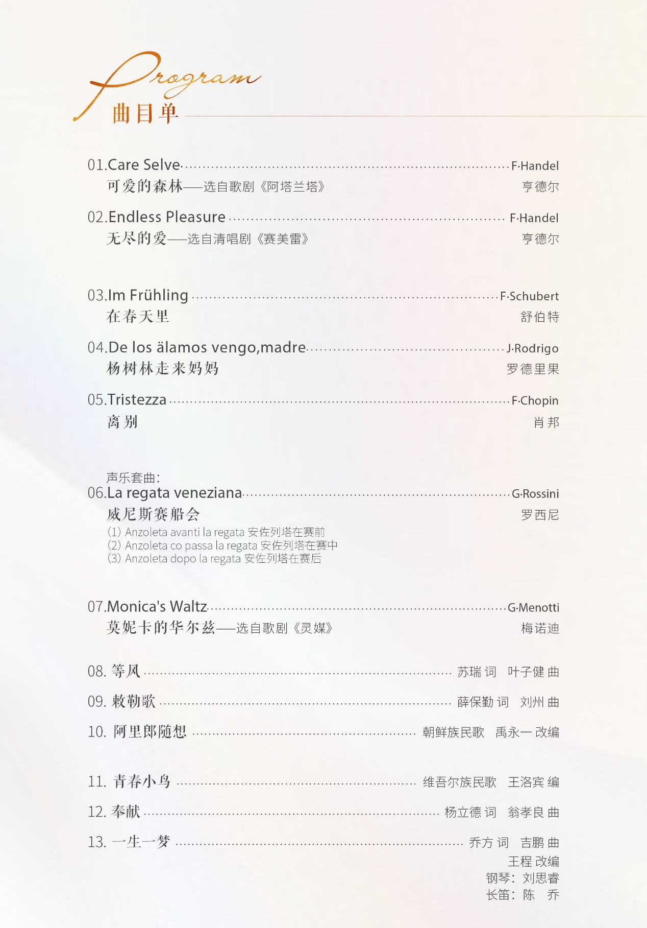 作為優(yōu)秀的聲樂鋼琴伴奏家,具有嫻熟的演奏技巧和豐富的作品積累,多年來曾受邀與吳碧霞、郭森、石倚潔、DENYCE GRAVES等眾多國(guó)內(nèi)外著名歌唱家合作演出。