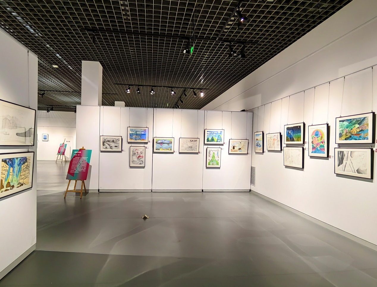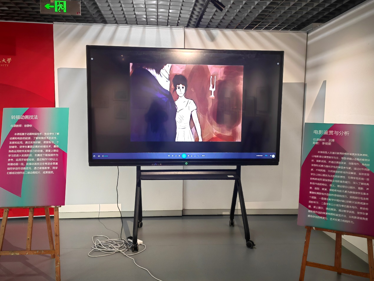 本次聯展以“星夢高遠,美潤啟航”為主題,包括《海報設計與制作》《攝影藝術鑒賞與基礎》《透視與空間》《電影鑒賞與分析》《中國美術史》《轉描動畫技法》《西方美術與觀念》《空天產品美學設計》《水彩畫技法》等課程,包含繪畫、海報、影像等類型作品,集中展示了二百余名學生的創作作品。