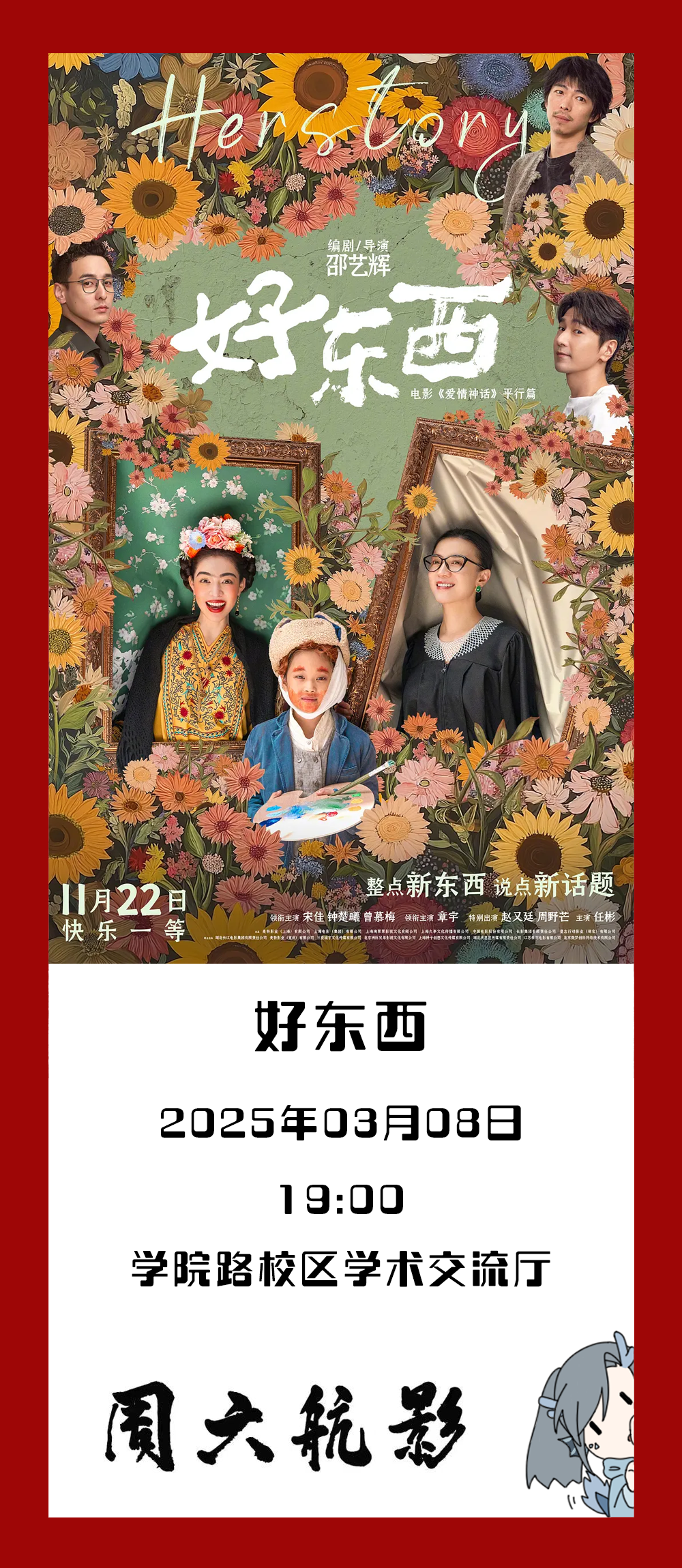 在本周讓我們和周六航影一起,攜手翻開《好東西》的篇章,感受女性在時(shí)代洪流中,獨(dú)特光芒與不懈奮斗,體會(huì)女性智慧與社會(huì)進(jìn)步的深刻交融,攜手構(gòu)建一個(gè)更加平等,尊重與繁榮的世界。