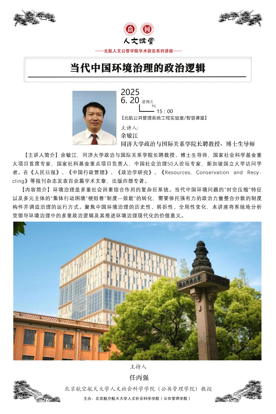 環境治理是多重社會因素綜合作用的復雜巨系統。當代中國環境問題的“時空壓縮”特征以及多元主體的“集體行動困境”梗阻著“制度—效能”的轉化,需要依托強有力的政治力量整合分散的制度構件并調適治理的運行方式。聚焦中國環境治理的歷史性、轉折性、全局性變化,本講座將系統地分析黨領導環境治理中的多重政治邏輯及其推進環境治理現代化的價值意義。