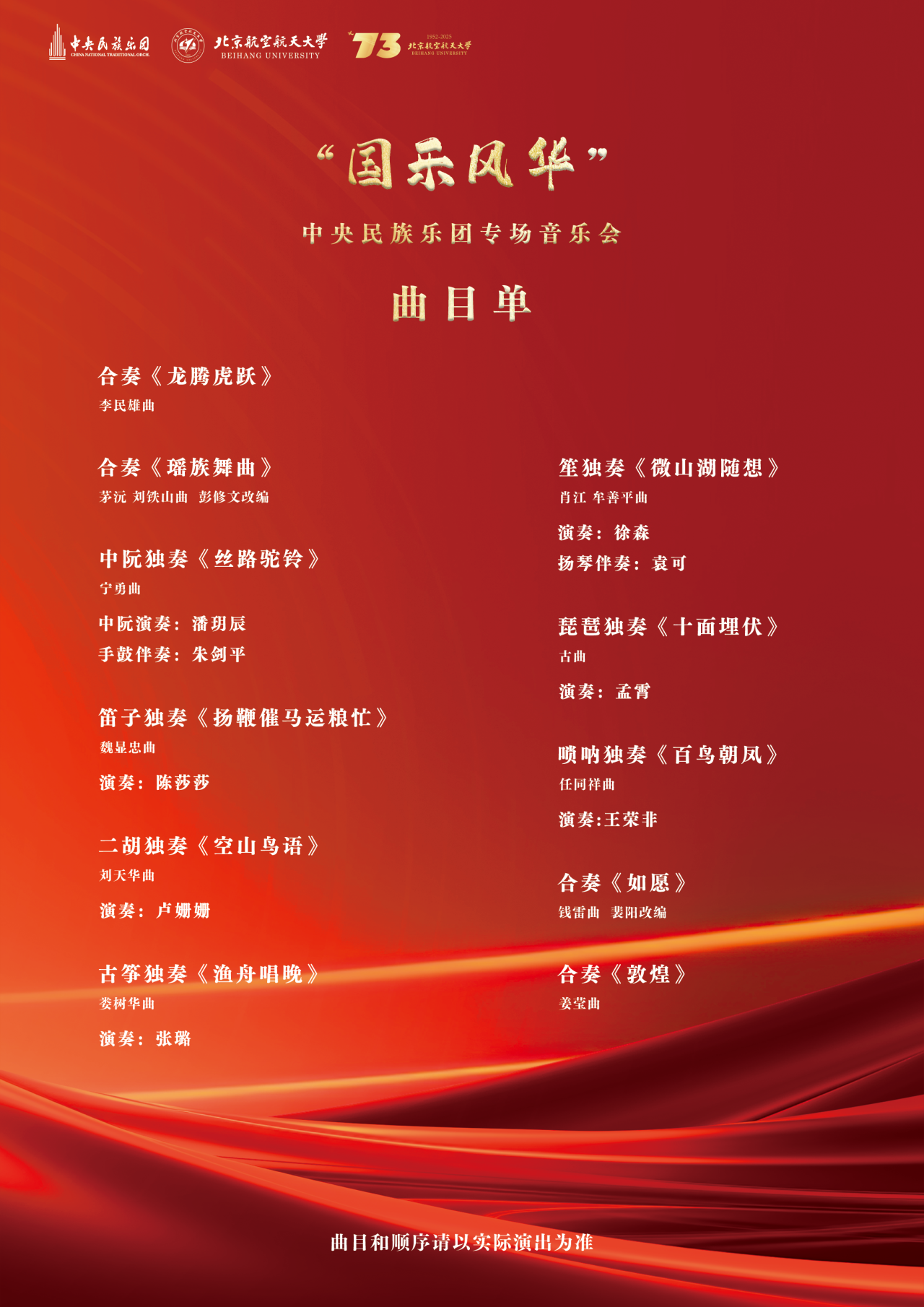 【慶祝北京航空航天大學建校73周年系列活動】國樂風華中央民族樂團專場音樂會